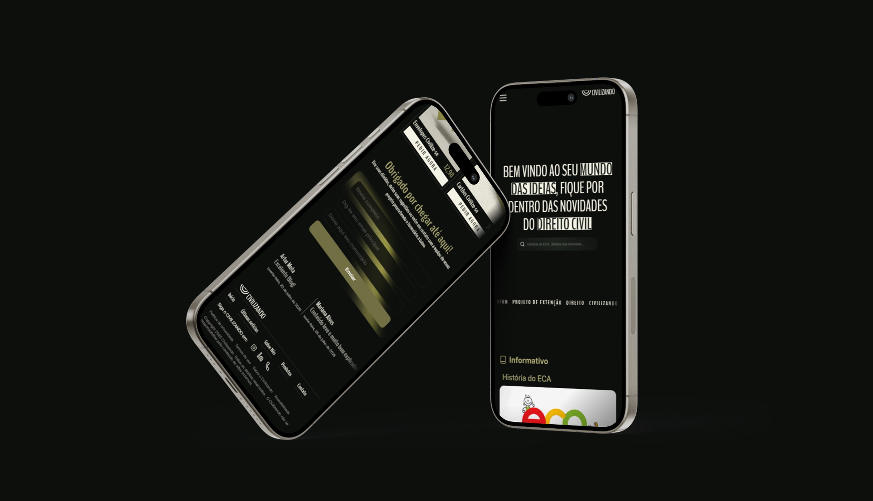 O projeto Civilizando é uma página desenvolvida no Framer, criada para traduzir visualmente a essência de um espaço de aprendizado e reflexão. O design adota uma estética editorial, com tipografia expressiva, composição limpa e ritmo visual fluido, valorizando o conteúdo e a experiência de leitura.